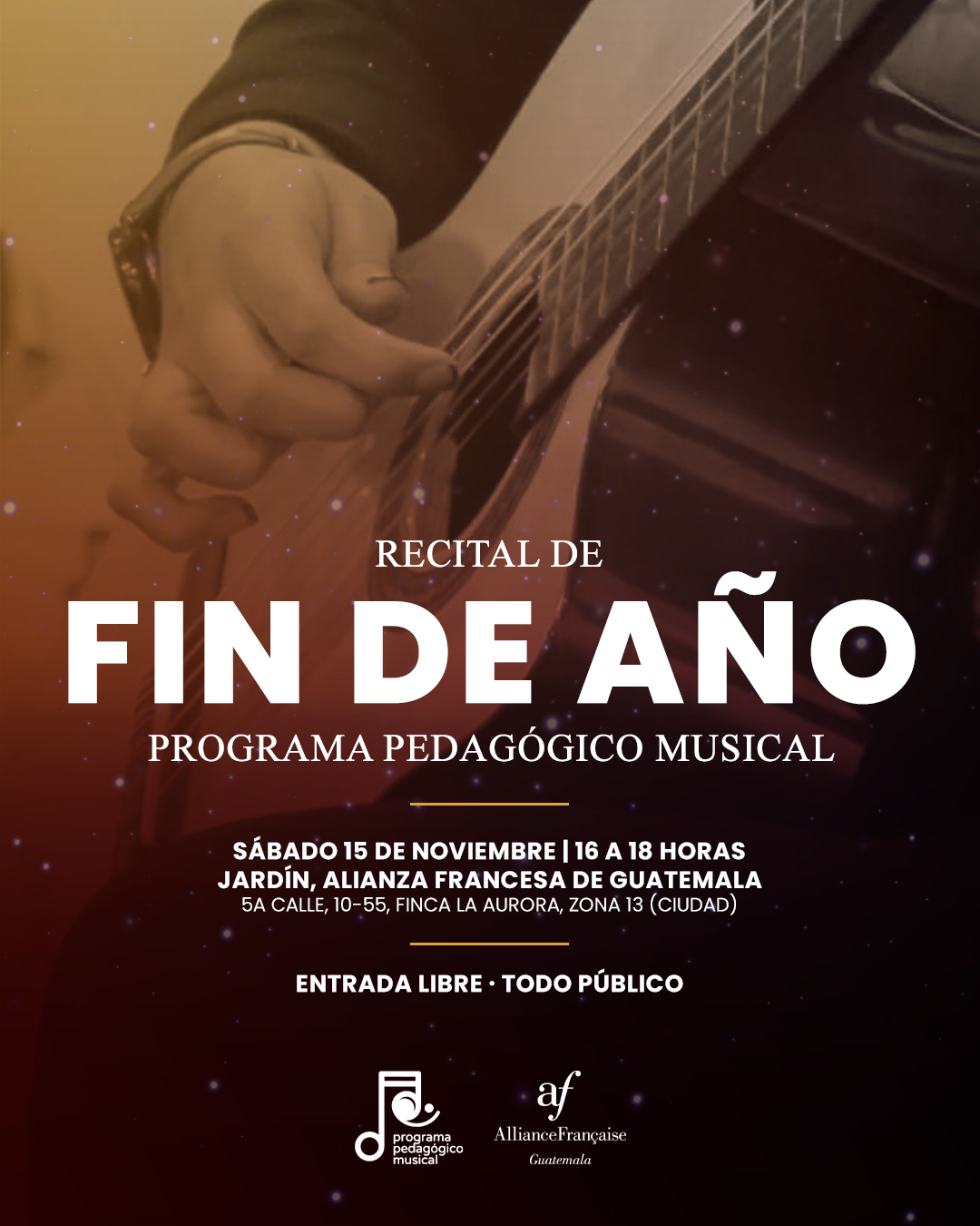 La Alianza Francesa de Guatemala te invita a disfrutar de una tarde llena de talento, aprendizaje y música en vivo con el Recital de Fin de Año de nuestros estudiantes del Programa Pedagógico Musical.