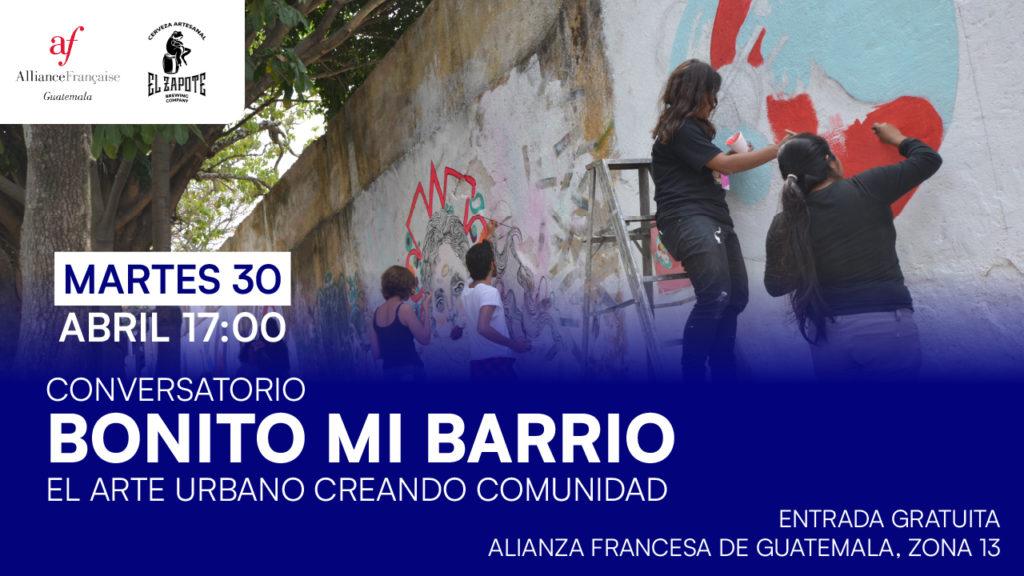 Nos complace invitarles al conversatorio que tiene como tema «Bonito Mi Barrio» para hablar sobre la creación de arte urbano en diferentes comunidades. ¡Esperamos que puedan asistir! ????️ 30/04/2024 ⏲️ 17:00 ???? 5a calle 10-55, zona 13, frente al Museo de los Niños. ???? ENTRADA GRATUITA ???? PARQUEO GRATUITO (SEGÚN DISPONIBILIDAD) ¡Te esperamos!