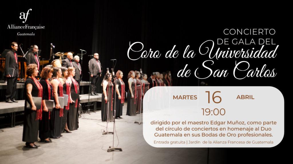 La Alianza Francesa de Guatemala presenta: Concierto de Gala del Coro de la Universidad de San Carlos, dirigido por el maestro Edgar Muñoz, como parte del círculo de conciertos en homenaje al Duo Guatemala en sus Bodas de Oro profesionales. Fecha: martes 16/04/2024 Hora: 19:00 Lugar: jardín de AFGT Dirección: 5a calle 10-55, zona 13, […]