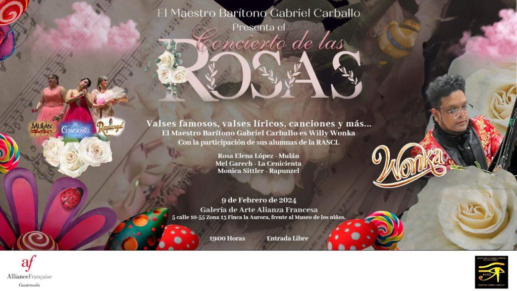 El Maestro Barítono Gabriel Carballo presenta EL PORTENTOSO CONCIERTO DE LAS ROSAS, Con valses famosos, valses lírico, canciones y más… El Maestro Gabriel Carballo como Willy Wonka. Con la participación de sus alumnas Soprano Rosa Elena López como la Princesa Mulan, Soprano Mel Garech como la Princesa Cenicienta y Soprano Mónica Sittler como la Princesa […]