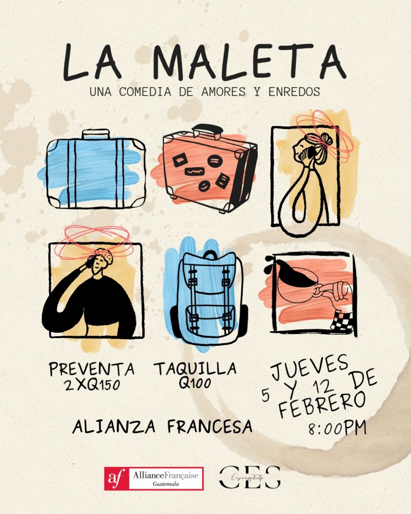 Una comedia junto a Cesiempreteatro llena de humor, amor y muchos enredos. Acompaña esta presentación artística en sus dos funciones planificadas durante febrero en Alianza Francesa. Preventa vía Instagram @cesiempreteatro Preventas: 4898 – 1069 Preventa: 2×1 Q150 Taquilla: Q100 Jueves 5 de febrero | 20:00 horas Jueves 12 de febrero | 20:00 horas Jardín, Alianza […]