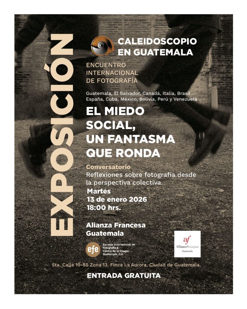 La Alianza Francesa de Guatemala invita a la exposición y conversatorio: “Caleidoscopio en Guatemala”, un encuentro internacional de fotografía que reúne miradas de Guatemala, El Salvador, Canadá, Italia, Brasil, España, Cuba, México, Bolivia, Perú y Venezuela. Bajo el título “El miedo social, un fantasma que ronda”, esta exposición propone una reflexión colectiva sobre la fotografía […]
