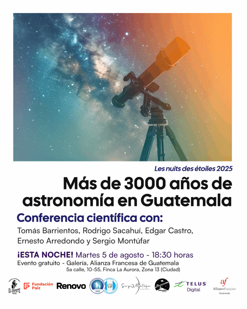 En el marco de «Noches de estrellas» participa en una noche llena de conocimiento, diálogo y aprende sobre los astros en una conferencia fascinante dedicada a la astronomía maya, un conocimiento milenario que unía ciencia, espiritualidad y observación del cosmos. En esta ocasión contaremos con la participación de: Tomás Barrientos Rodrigo Sacahuí Edgar Castro Ernesto […]